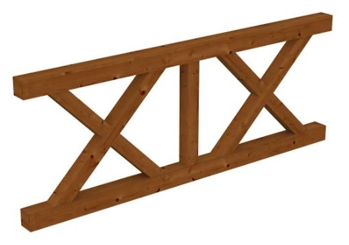 Die dekorative SKAN HOLZ Brüstung mit massiven Andreaskreuzen aus Konstruktionsvollholz eignet sich für SKAN HOLZ Terrassenüberdachungen aus Leimholz mit einem Pfostenabstand von 170 / 220 / 270 cm.