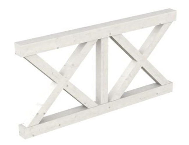 Die dekorative SKAN HOLZ Brüstung mit massiven Andreaskreuzen aus Konstruktionsvollholz eignet sich für SKAN HOLZ Terrassenüberdachungen aus Leimholz mit einem Pfostenabstand von 170 / 220 / 270 cm.