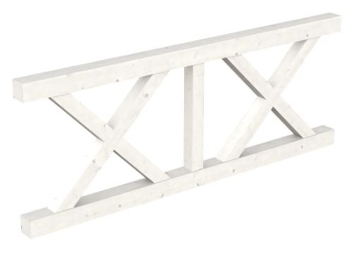 Die dekorative SKAN HOLZ Brüstung mit massiven Andreaskreuzen aus Konstruktionsvollholz eignet sich für SKAN HOLZ Terrassenüberdachungen aus Leimholz mit einem Pfostenabstand von 170 / 220 / 270 cm.