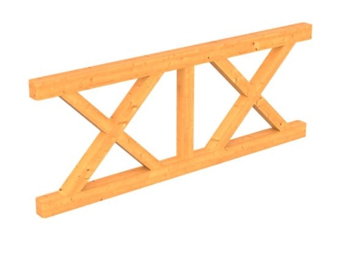 Die dekorative SKAN HOLZ Brüstung mit massiven Andreaskreuzen Douglasie eignet sich für SKAN HOLZ Terrassenüberdachungen aus Douglasie mit einem Pfostenabstand von 170 / 220 / 270 cm