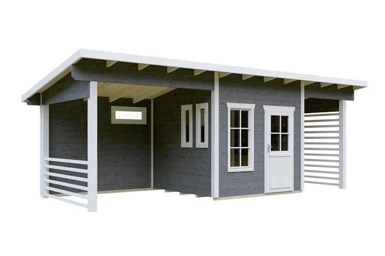 | Farbliche Behandlung | Naturbelassen, schiefergrau Sparen Sie Ihre kostbare Zeit und wählen Sie ein bereits farbbehandeltes Blockbohlenhaus. Ihr Vorteil: Sie können direkt mit der Montage beginnen! Die Blockbohlen und Eckblenden sowie die Türen und Fenster sind von außen, die Dachblenden beidseitig farbbehandelt. Die Innenseiten der Blockbohlen sowie Schnittkanten, Fußboden, Dachschalung und Pfetten sind produktionsbedingt unbehandelt. |
