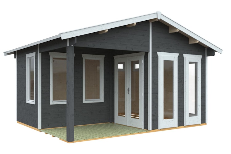 | Farbliche Behandlung | optional in schiefergrau Sparen Sie Ihre kostbare Zeit und wählen Sie ein bereits farbbehandeltes Blockbohlenhaus. Ihr Vorteil: Sie können direkt mit der Montage beginnen! Die Blockbohlen und Eckblenden sowie die Türen und Fenster sind von außen, die Dachblenden beidseitig farbbehandelt. Die Innenseiten der Blockbohlen sowie Schnittkanten, Fußboden, Dachschalung und Pfetten sind produktionsbedingt unbehandelt. |
