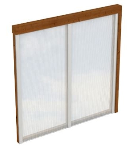 Die SKAN HOLZ Seitenwand aus Polycarbonat Doppelstegplatten eignet sich für SKAN HOLZ Terrassenüberdachungen aus Douglasie mit einer Tiefe von 250 / 300 / 350 cm.