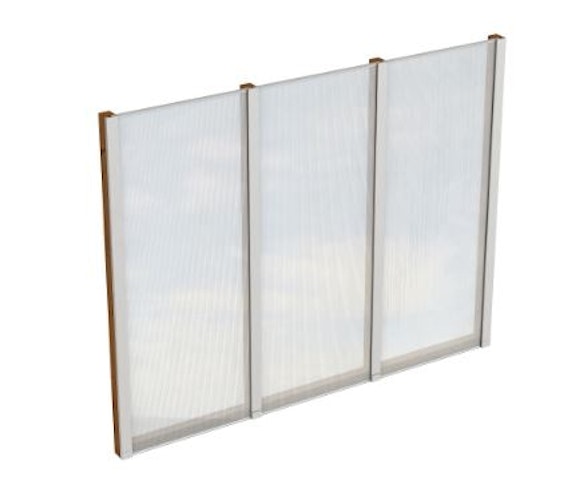 Der Lieferumfang besteht aus 3 Polycarbonat Platten ( 188 x 94,7 cm) und dem dazu gehörenden Holzrahmen.