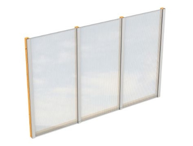 Der Lieferumfang besteht aus 3 Polycarbonat Platten ( 188 x 94,7 cm) und dem dazu gehörenden Holzrahmen.