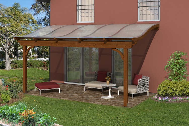 • Robuste Terrassenüberdachung aus hochwertigem Leimholz ohne Mittelpfosten